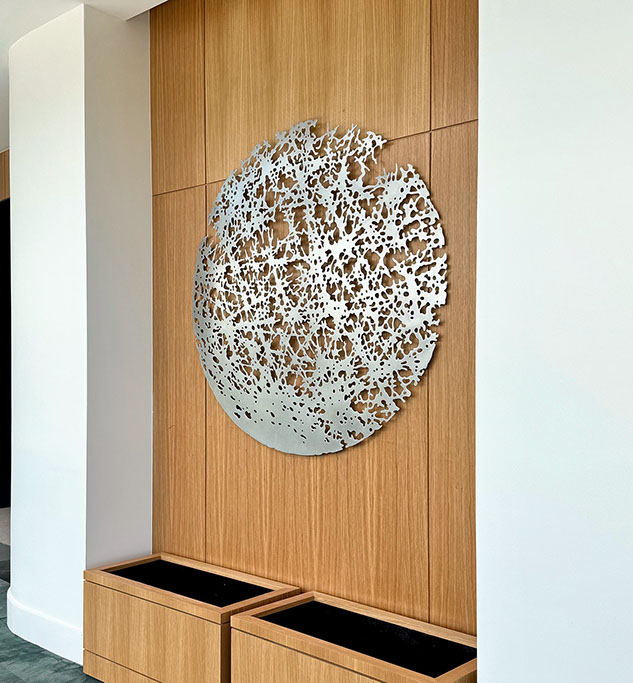 A marine-grade stainless steel wall sculpture for luxury Foster
