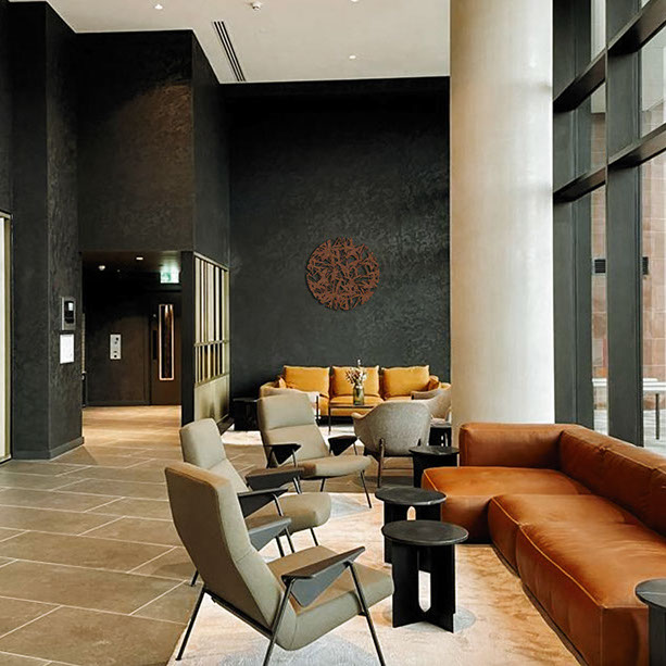 one of two 1.2 metre aged brass wall sculptures in the Talise Spa