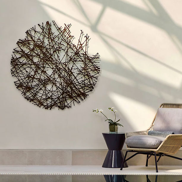 I work to commission, for public, private and corporate clients and collectors, creating free standing and wall sculptures for interior and exterior spaces. I offer a bespoke service to art consultants, interior designers, architects and garden designers. If you have a digital photo I can produce a visual to scale so you can see exactly how it will look on your wall.