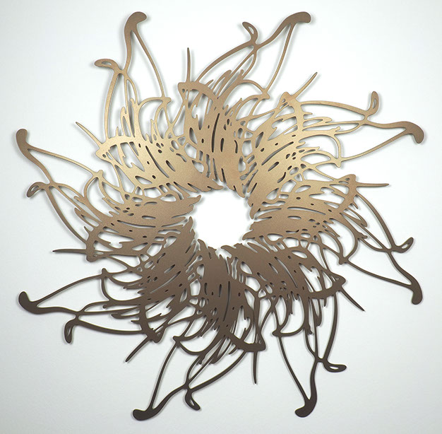 My background in graphic design influences my exploration of form and line. Drawings and photographs are the starting point from which I develop organic, abstract and figurative sculpture. I create intricate drawings from which the final artwork is digitally cut into stainless steel, corten weathering steel, aluminium, copper, brass and plywood, transforming the drawn line into a tangible object.