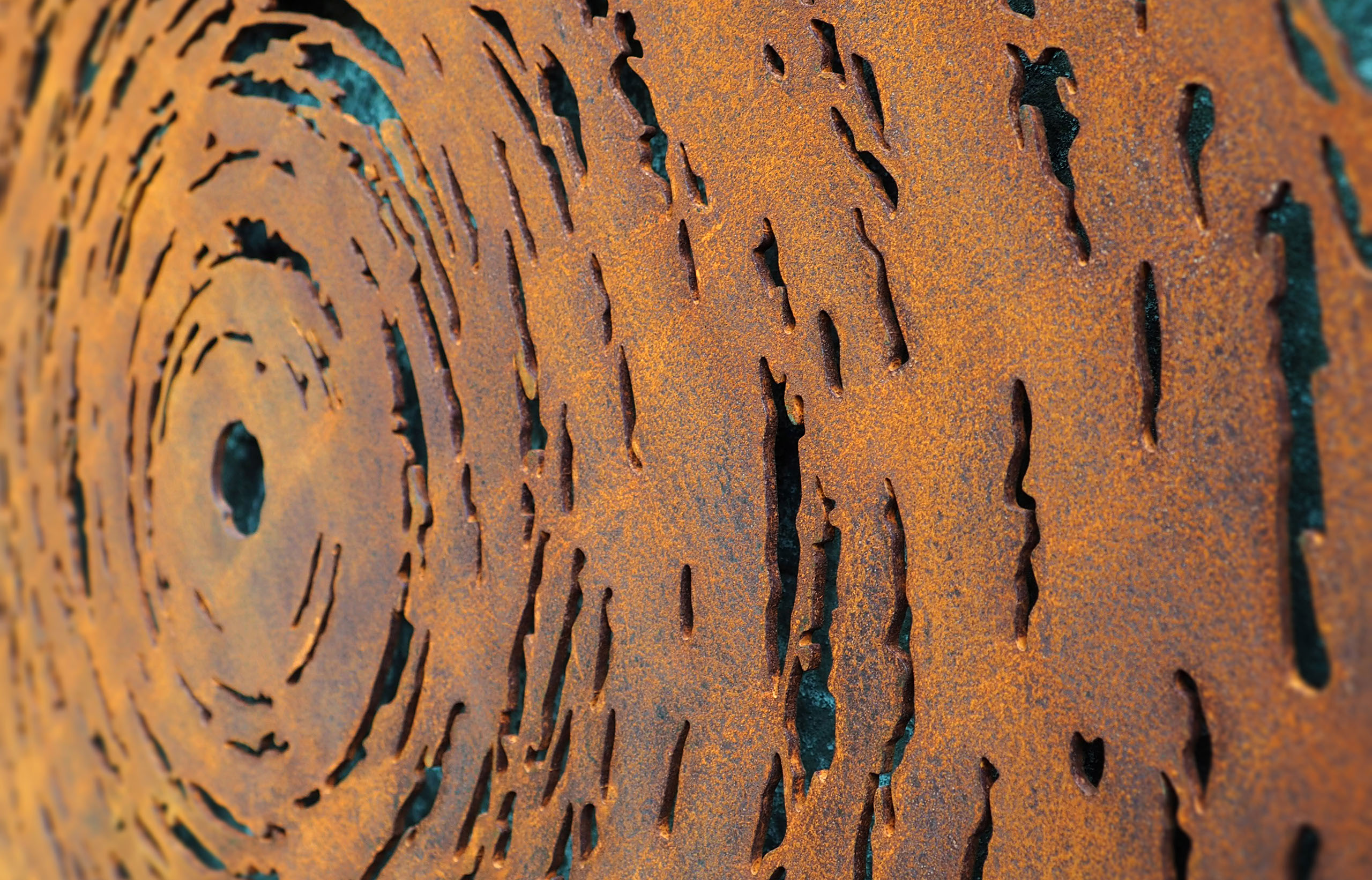 Light Falling through Trees in layered corten weathering steel