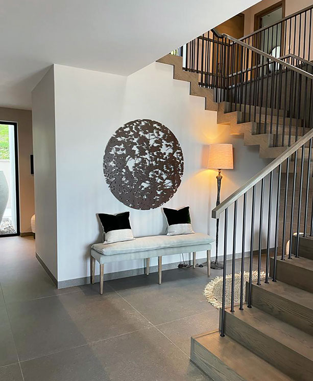 I work to commission, for public, private and corporate clients and collectors, creating free standing and wall sculptures for interior and exterior spaces. I offer a bespoke service to art consultants, interior designers, architects and garden designers. If you have a digital photo I can produce a visual to scale so you can see exactly how it will look on your wall.